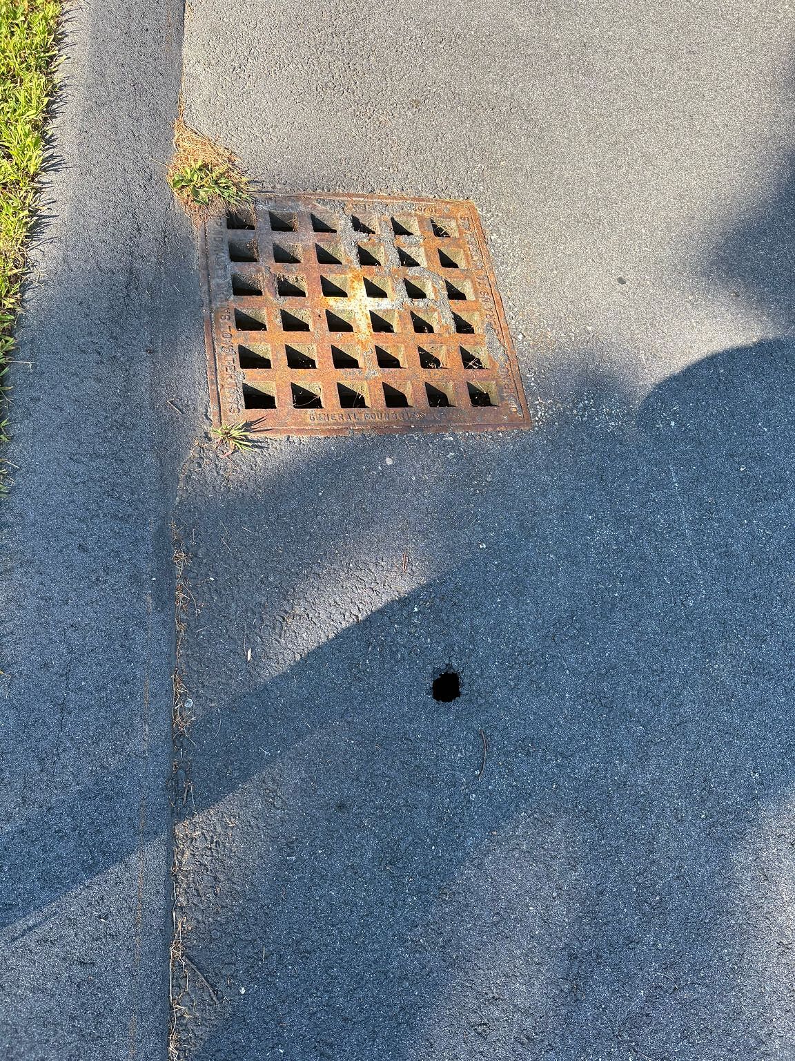 Hole in ground near water drain