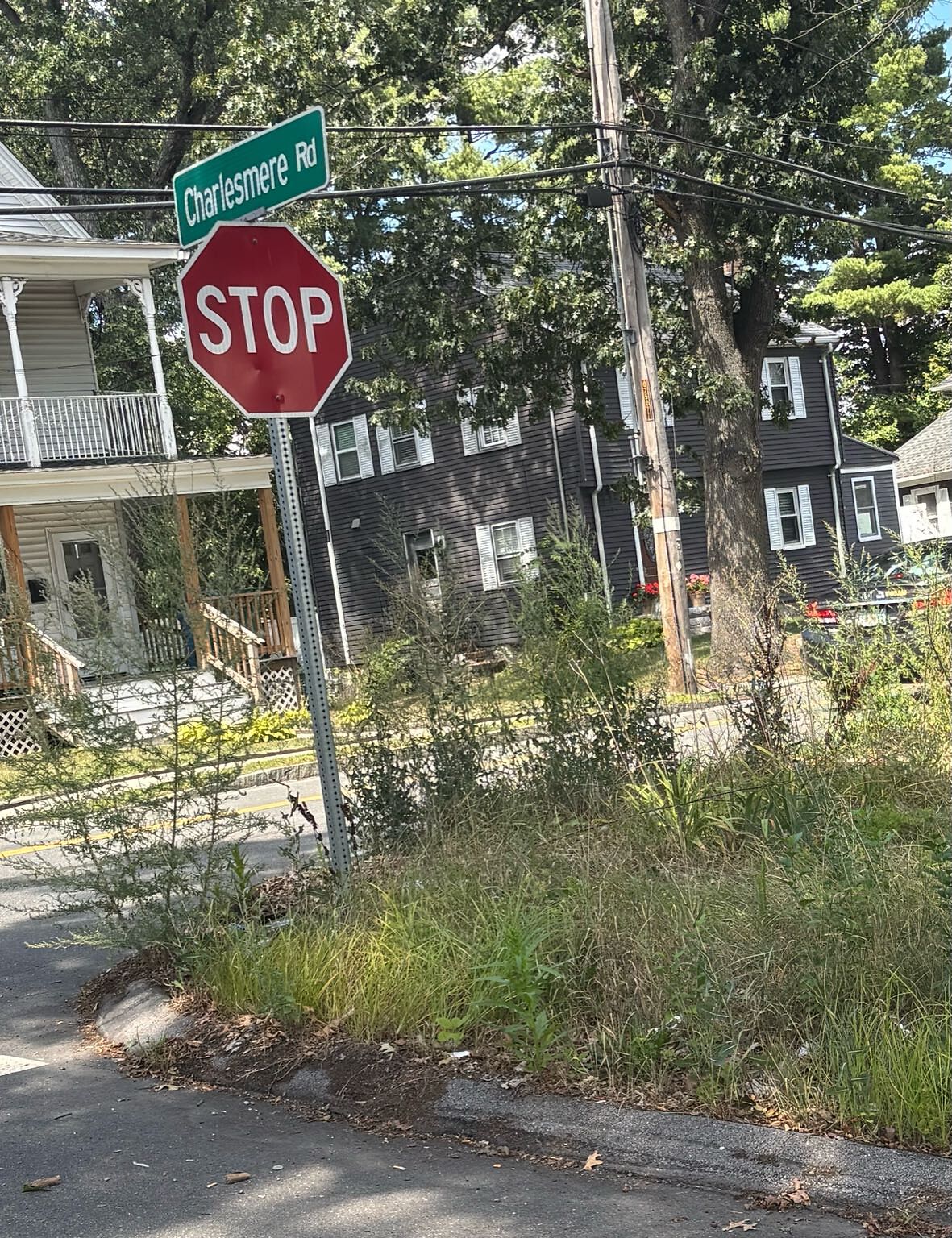 Could someone please cut down this overgrowth as well as the house the house across from this one on Charlesmere, on Treble Cove, could that overgrowth be trimmed back too?? Thanks