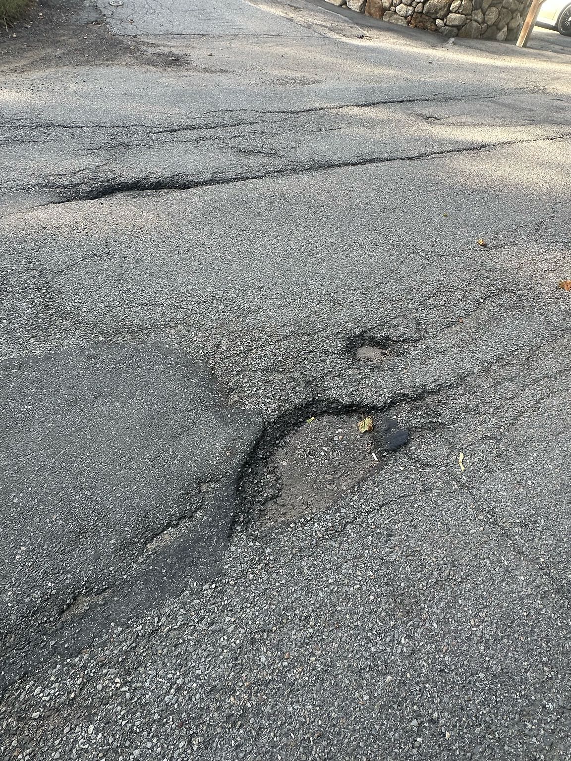 Over 10 dangerous potholes throughout (all) of outlook road not including 2 where outlook meets Pauline rd