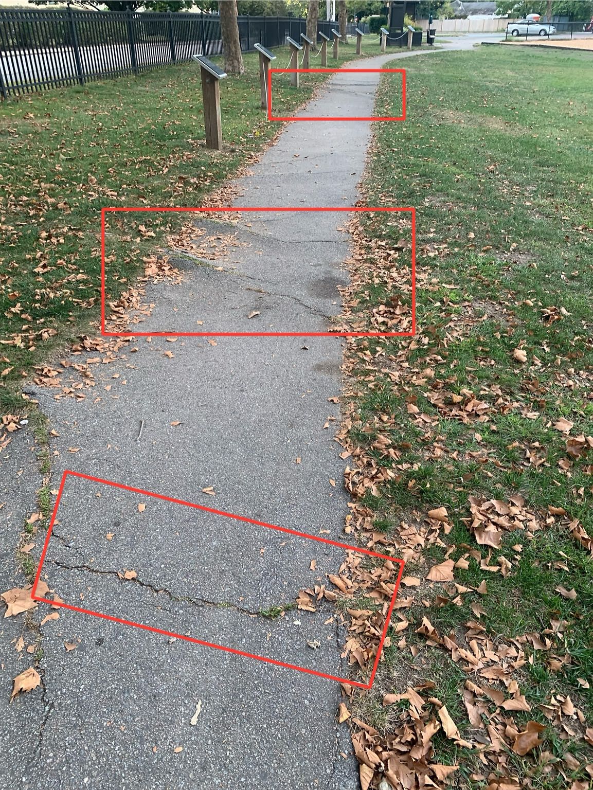 Paved sidewalk in Kohlrausch Park is a safety hazard and causes damage to wheelchairs and children's scooters.
