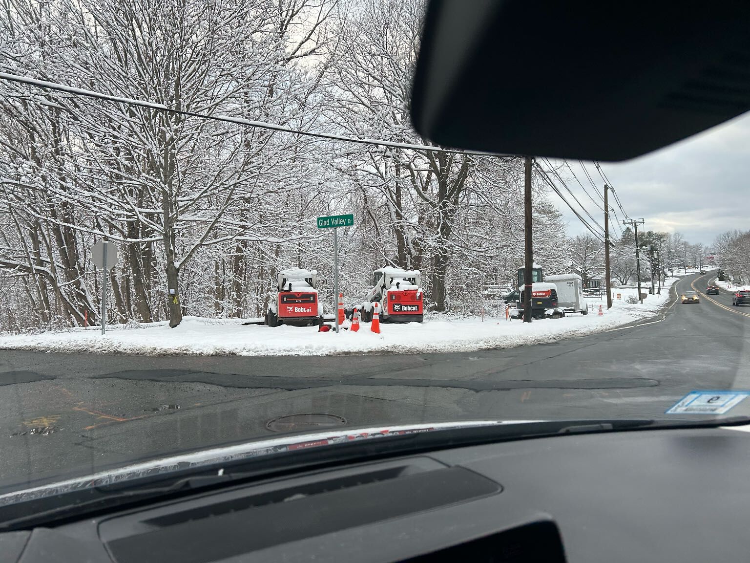 Equipment blocks the view of Boston Rd traffic coming out of Glad Valley making this even more dangerous than usual.