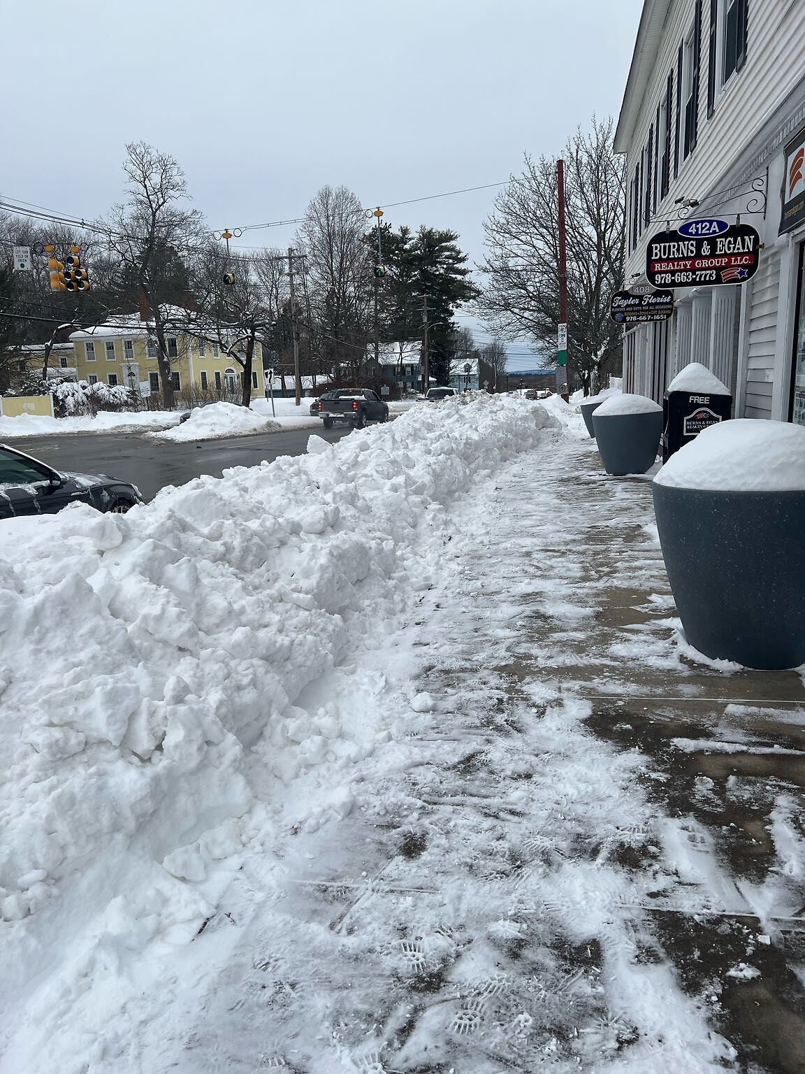Unsafe and customers can't access the sidewalk to get to the businesses and parking area has not been plowed. Can you send someone?