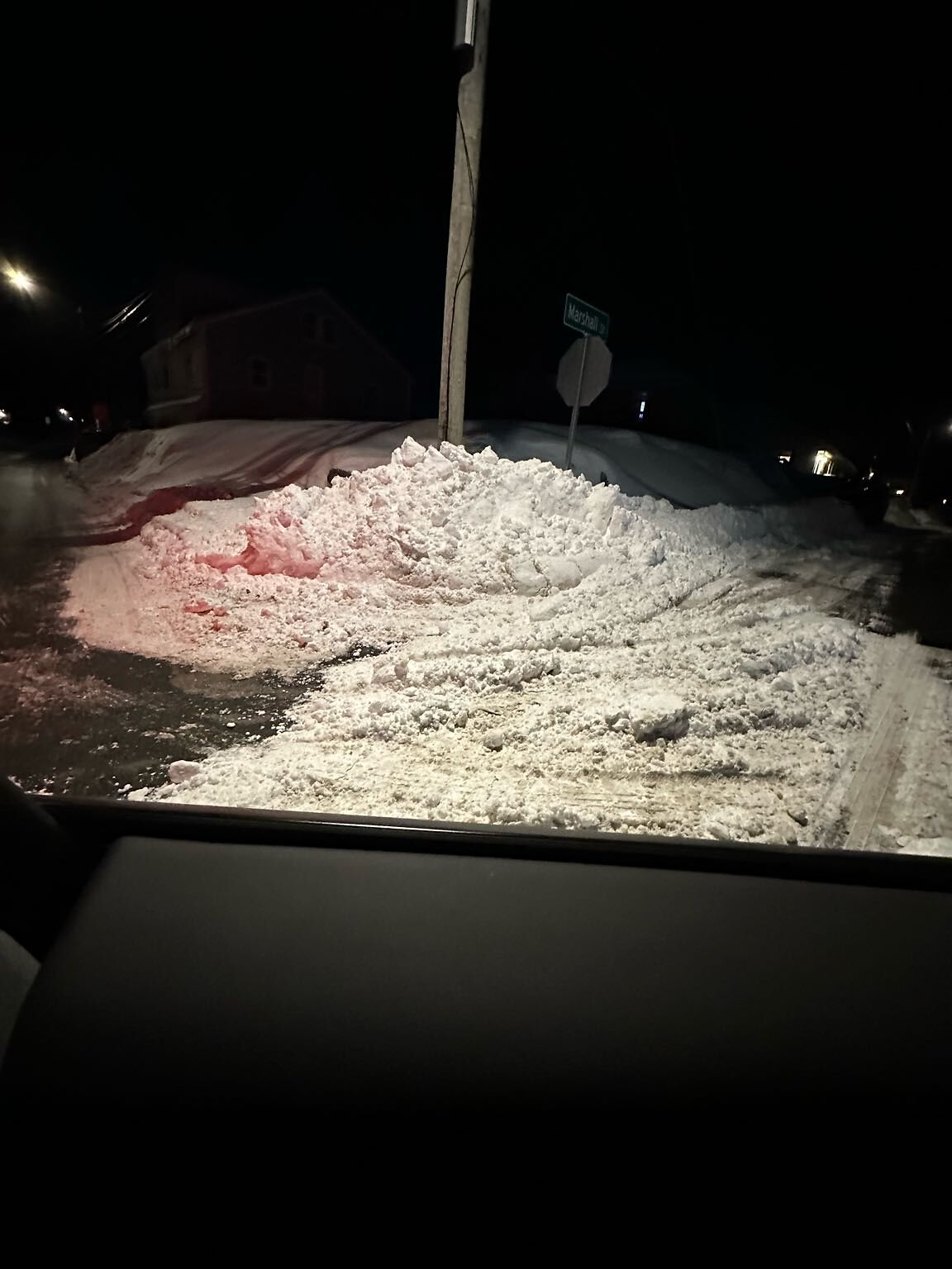 The corner of Eliot and Marshall st needs to be cleaned up. You can't see when taking a turn due to the snow pile thats on the street.
