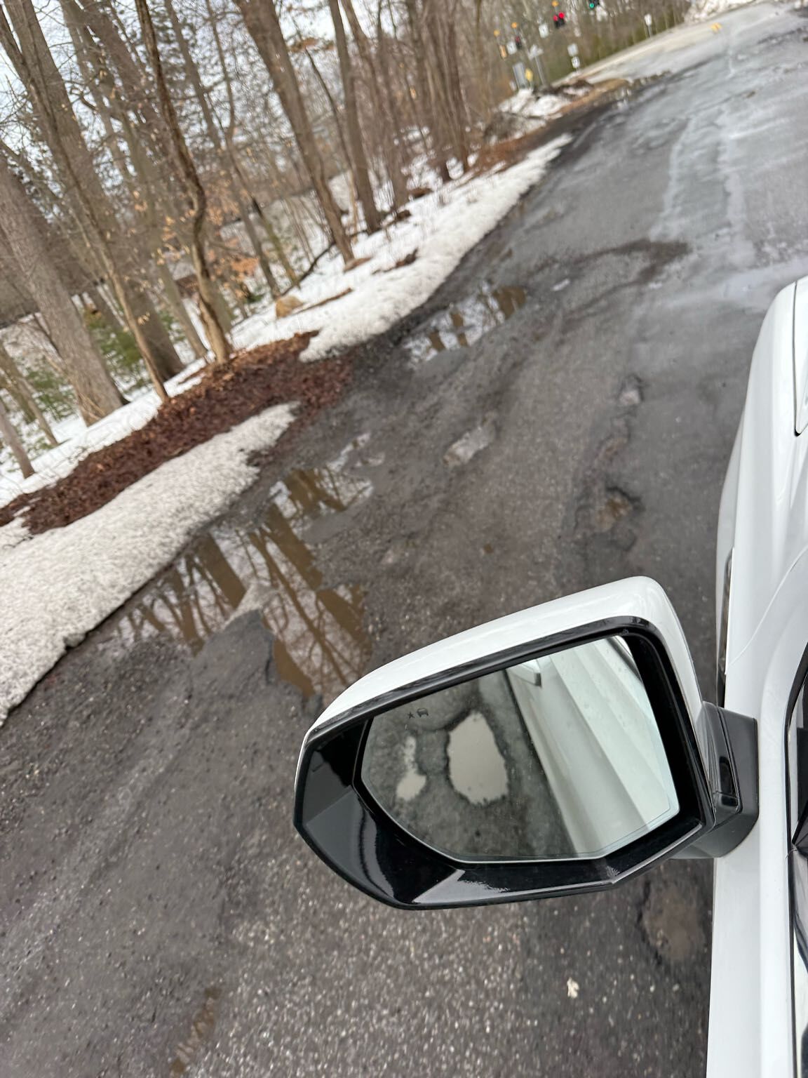 Many deep potholes on both sides of street