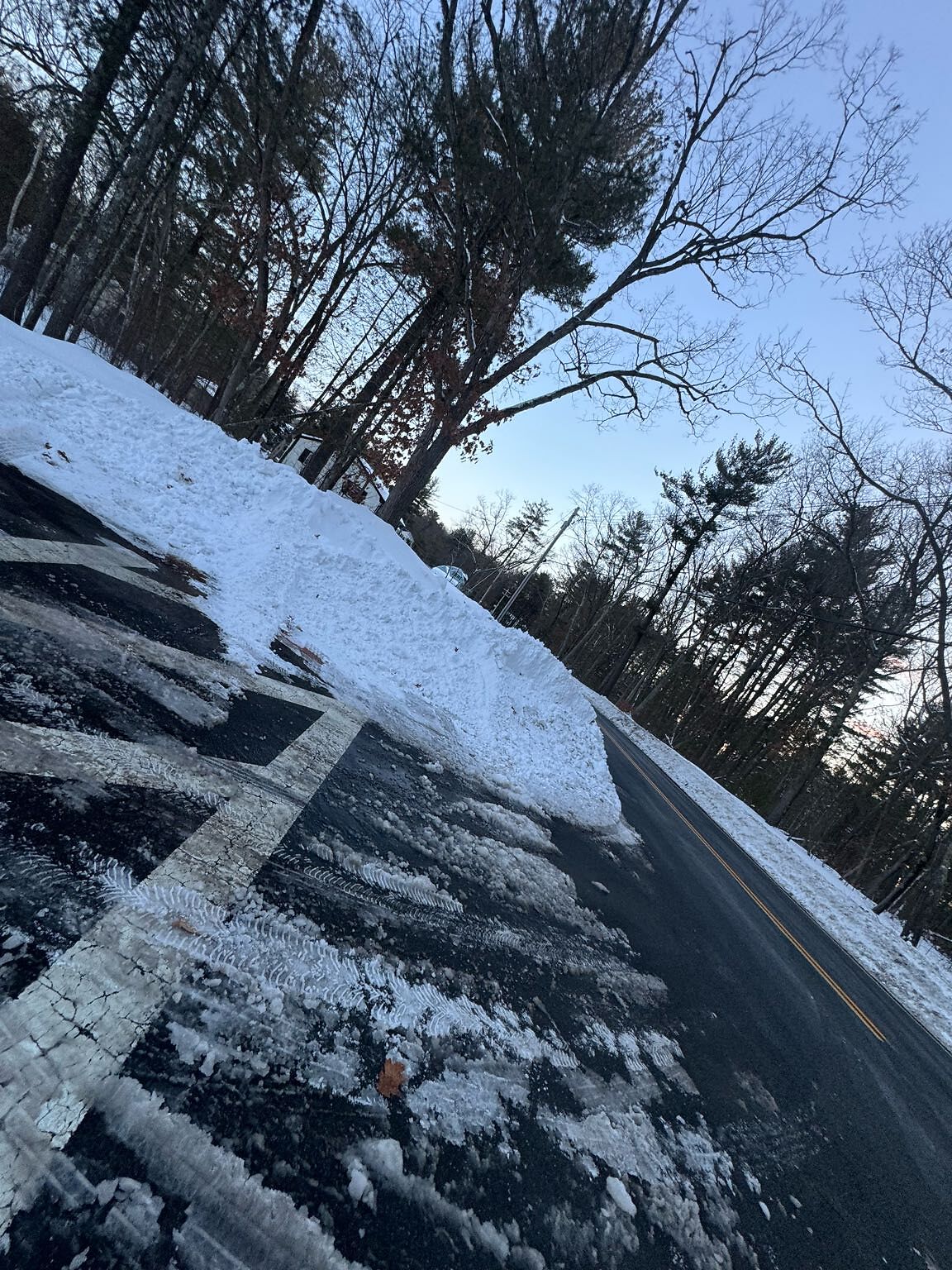 Please push back snowbank. Cannot see cars speeding by on curve in road on Pond Street. Death trap. Thank you!!!!