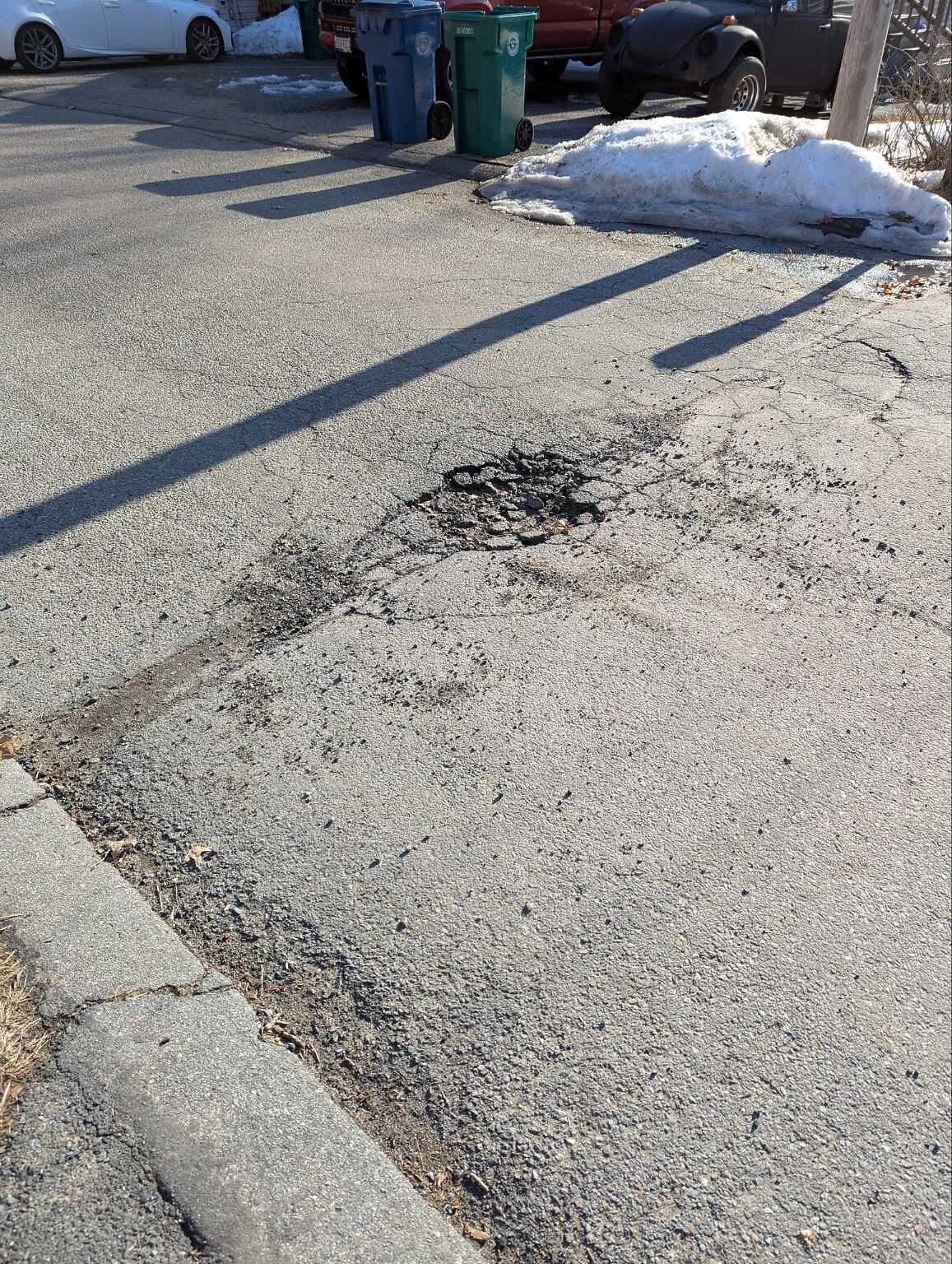 Pothole in road in front of 46 allendale ave driveway