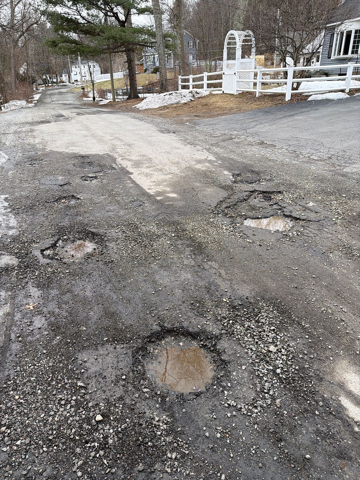 Deep pot holes throughout entire road